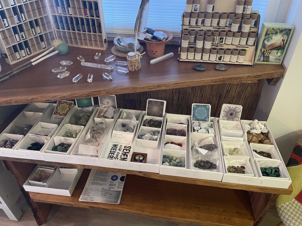 Jede Position ist mit einem entsprechenden Anliegen verbunden. Dazu kommen ausgesuchte Pflanzenhelfer, Pflanzendüfte, die die Sinne umschmeicheln, sowie speziell ausgewählte Heilsteine im Medizinrad – passend zum jeweiligen Thema. Diese entwickeln ihre eigene Kraft und Schwingung und stehen im Zusammenhang mit der jeweiligen Ahnenposition.